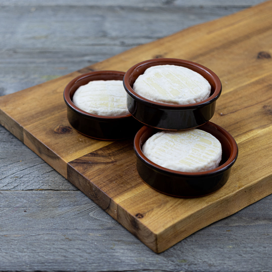 Der Saint Marcellin wiegt ca 80g und sitzt in einer Tonschale.